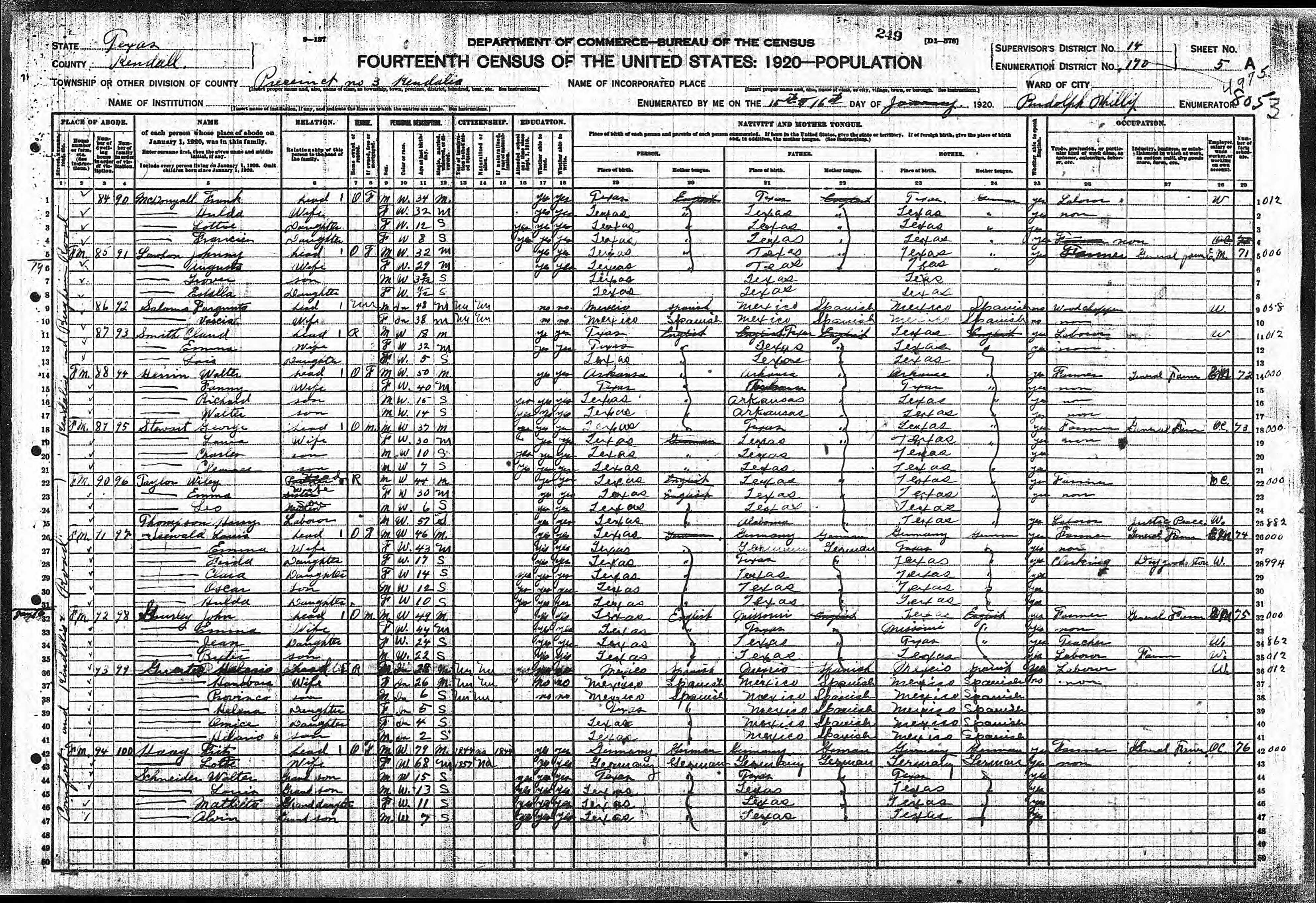 was born 16 Nov 1905 in Bergheim, Kendall, Texas and died 7 Jan 1994 in Boerne,