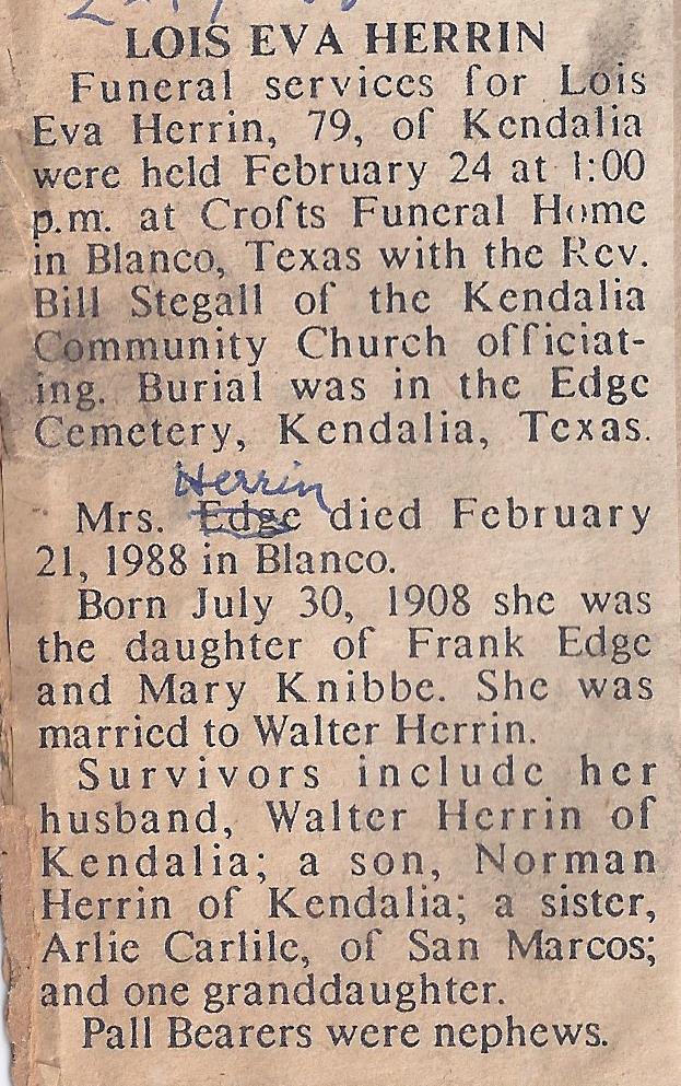 On 20 Sep 1933 she married Walter "Buster" Herrin. They had one son: