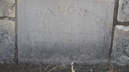 Daughter of E & J C Ludolf was born and died 24 Aug 1873. She was the daughter of Eduard Ludolf (1842 - 1899) and Josah C Edge Ludolf.