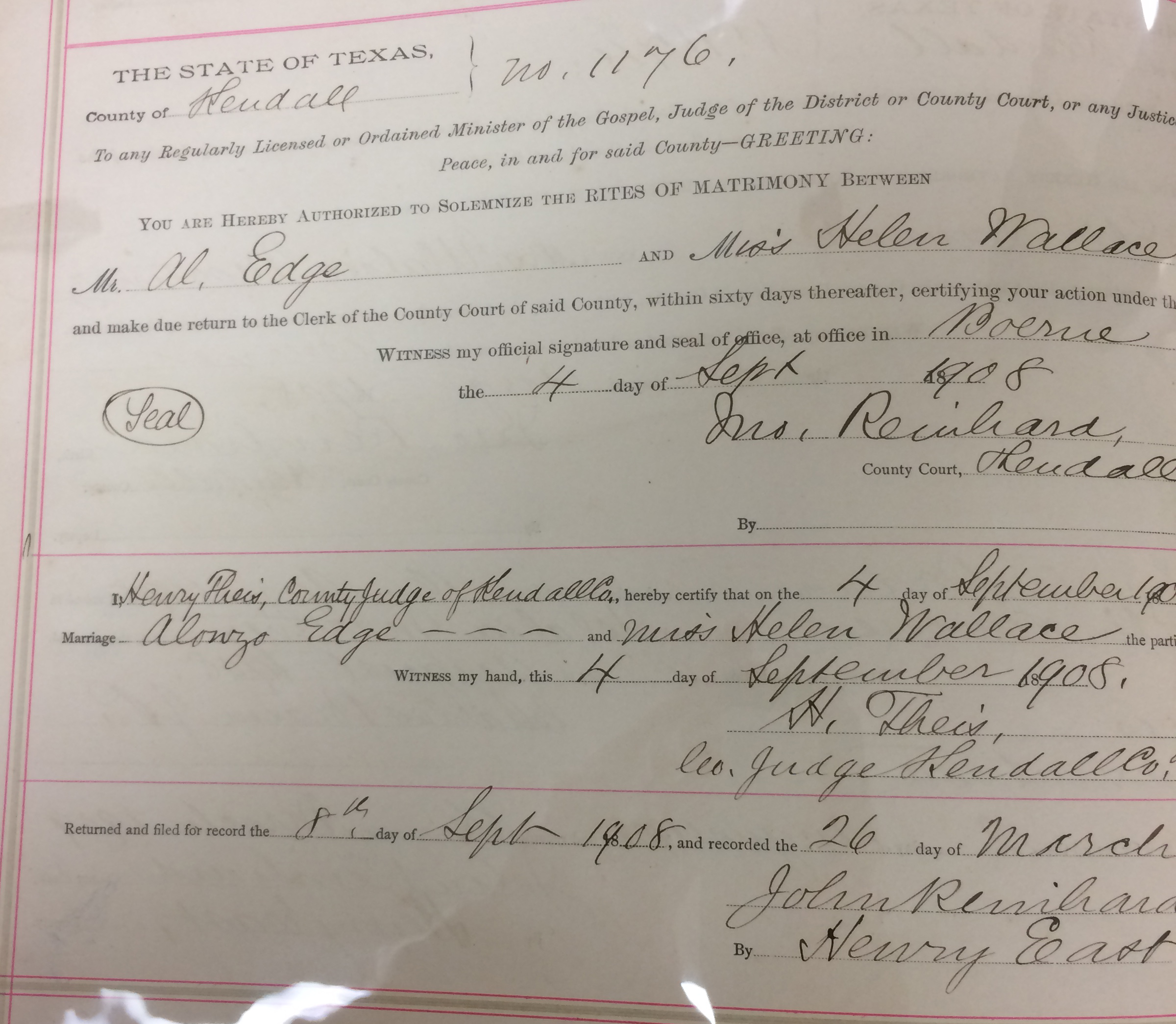 On 4 Sep 1908 she married Alonzo Lafayette Edge.